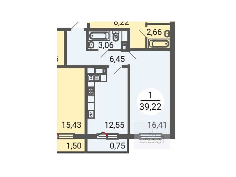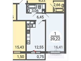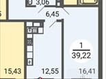 общая 39,22 м2, жилая 17 м2, кухни 13 м2 |