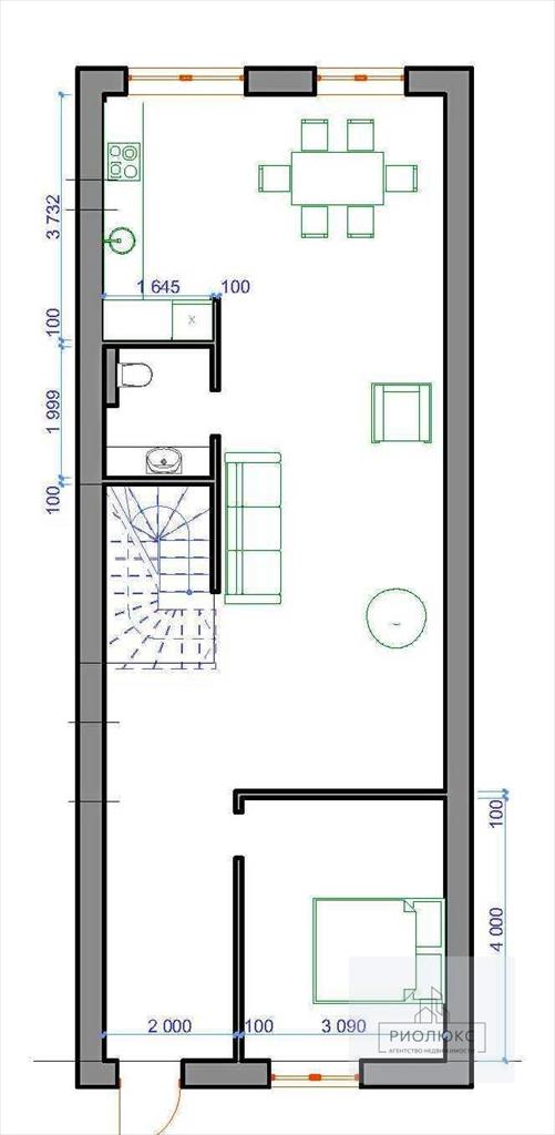 общая 156 м2, жилая 120 м2, кухни 35 м2 |