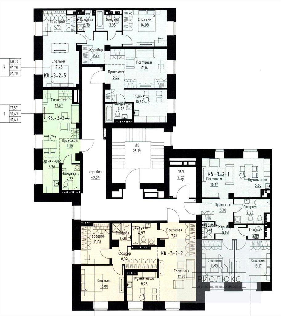 общая 70,09 м2, жилая 42 м2, кухни 8 м2 |