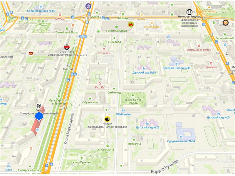 Легкий заезд с улиц Завенягина, Карла Маркса, Галиуллина, Бориса Ручьева. На машине или общественном транспорте – добираться до любой точки города одно удовольствие!